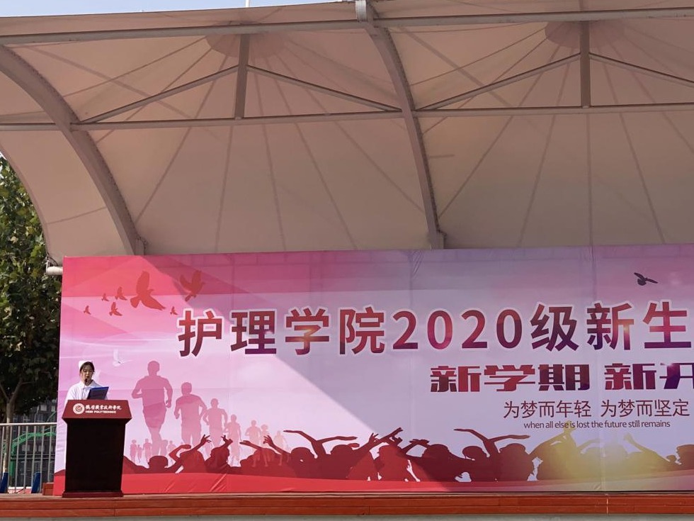 大会首先由苏丽秋书记致辞,她代表护理学院师生对新生的到来表示热烈欢迎,并对学院发展历史、学科建设、专业设置、特色班级等方面做了介绍,希望同学们从善于学习、独立思考、懂得做人、学会做事四个方面,努力成长为新时代德、智、体、美、劳全面发展的社会主义建设者和接班人。随后,新生代表2020级南丁格尔3班王奕发言,展现了对大学学习的信心及对未来职业梦想的无限向往;在校生代表、国家奖学金获得者韩喜莹发言,讲述了个人入校以来学习、技能的成长感悟,帮助新生正确规划大学学习生活;曾奋战在抗疫一线的毕业生代表李燕翔发言,讲述了疫情期间护理疑似患者的经历,展现出当人民健康受到威胁时,护士应有的职业责任和担当;护理学院辅导员老师代表王晓婷发言,引领新生确定职业方向,找准人生目标,勉励新生要铭记习近平总书记对广大青年的嘱托,树立远大理想、热爱伟大祖国、担当时代责任、勇于砥砺奋斗、练就过硬本领、锤炼品德修为。
