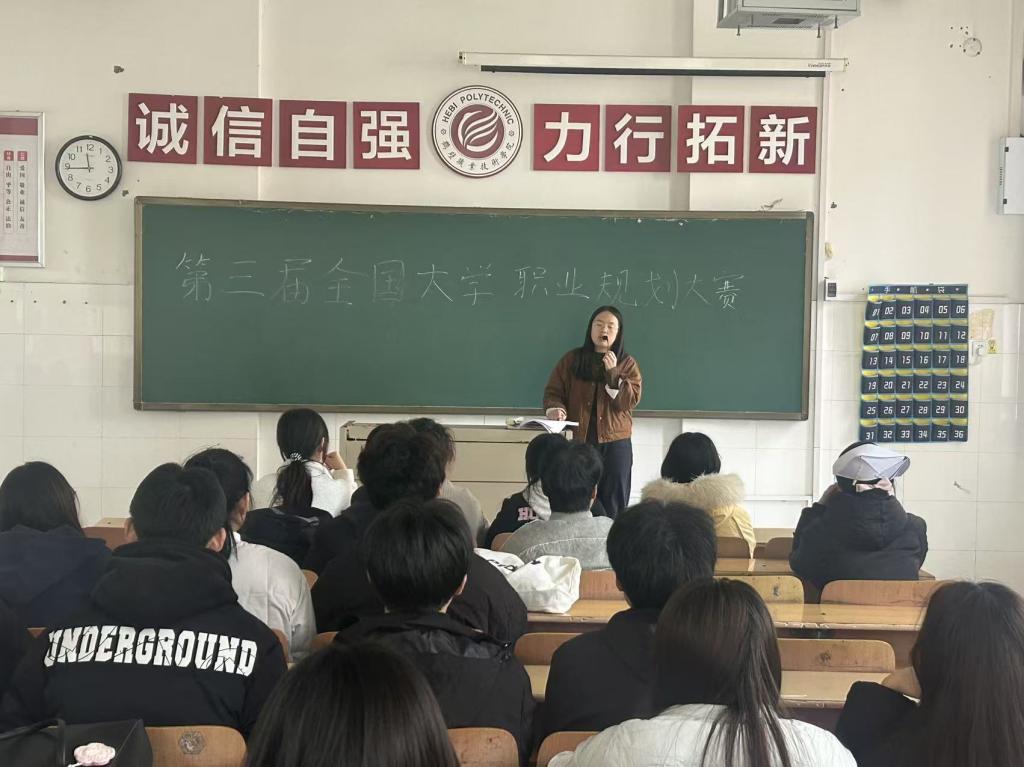 为帮助学生明确职业发展方向、提升职业规划能力,全力备战第三届全国大学生职业规划大赛,鹤壁职业技术学院护理学院于2025年10月21日在E311教室召开大赛动员会。