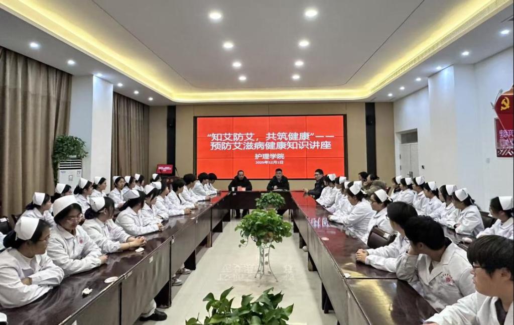2025年12月1日,在第38个“世界艾滋病日”,护理学院联合鹤壁煤业(集团)有限责任公司总医院(鹤壁市第二人民医院),在B317举办了“知艾防艾,共筑健康”专题讲座,邀请鹤煤总医院检验科副主任医师史尊基担任主讲嘉宾。护理学院党政办公室、学工办、南丁格尔志愿服务分队相关负责教师及学生代表近百人,共同参与讲座。
