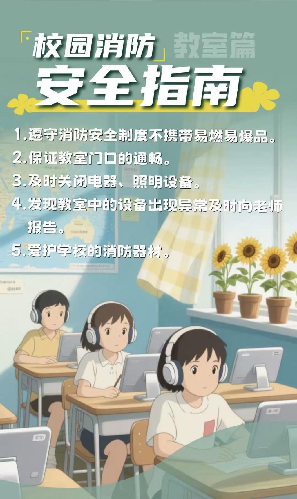 4.熟悉宿舍楼宇消防通道和灭火器位置,不堵塞消防通道,不挪动消防设施,发现火情及时报告、有序疏散。