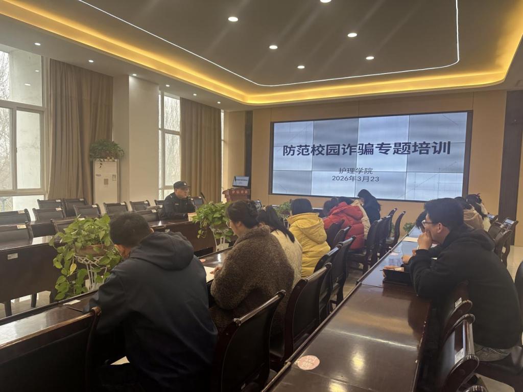 为筑牢校园安全防线,提升辅导员反诈宣传教育能力,切实守护学生财产安全,2026年3月23日,护理学院学工办在诚信4号楼B317会议室,组织全体辅导员开展防范校园诈骗专题培训。本次培训特邀鹤壁市公安局淇滨分局长江路派出所董本龙警官主讲,聚焦近期校园诈骗高发态势,以案释法普及反诈知识。