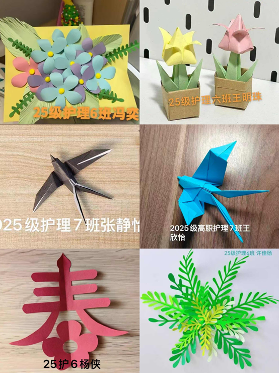 活动期间,同学们积极响应、居家自主参与创作,以彩纸、剪刀、胶水等常见材料为载体,发挥奇思妙想,亲手制作出一件件饱含春意的手作作品——立体花朵贺卡精致美观,郁金香纸艺盆栽清新雅致,春燕折纸灵动似飞,剪纸“春”字喜庆盎然。大家各展所长、大胆创新,有的精心拼贴,勾勒出层次分明、色彩鲜亮的春日花束;有的细致折叠,赋予春燕振翅翩飞的灵动姿态;有的巧手裁剪,将“春”字的喜庆意蕴融入方寸纸片;有的创意搭配,打造出绿意盎然、生机满满的纸艺绿植。原本普通的材料,在同学们的指尖流转间,被赋予了温度与心意,化作承载新春祝福、传递民俗韵味的独特信物。活动结束后,同学们纷纷表示,此次手作活动让自己在轻松惬意的假期时光中放慢了脚步,在动手创造的过程中收获了满满的成就感与幸福感,也在指尖的美好中,真切触摸到了浓浓的春意与醇厚的年味。