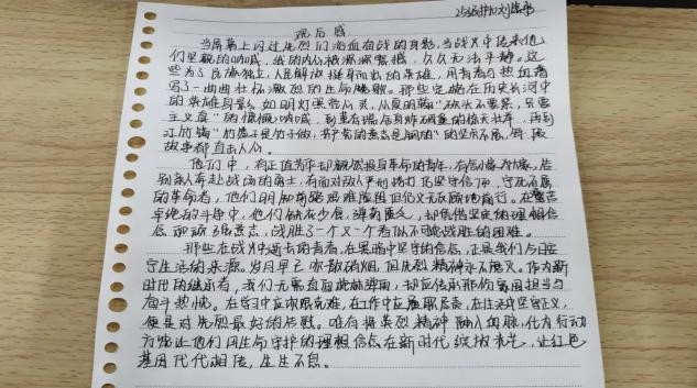在活动中,同学们利用课余时间自主观看《觉醒年代》《志愿军:雄兵出击》等经典红色影视作品。影片内容让同学们沉浸式感悟了“青山处处埋忠骨,何须马革裹尸还”的革命豪情,深刻体会到如今的和平生活来之不易。观影结束后,同学们结合自身感悟撰写观后感,字里行间饱含对先烈的崇敬之情与对历史的深刻思考。同时,在海报制作环节,同学们充分发挥创意,将红色元素与革命精神结合。作品中,红星、烈士浮雕等元素,既展现了对革命先烈的缅怀之情,又彰显了学生们对革命精神的追求与责任担当。一幅幅主题鲜明、设计精美的海报,成为传递红色基因、弘扬爱国精神的生动载体,营造出浓厚的校园红色文化氛围。