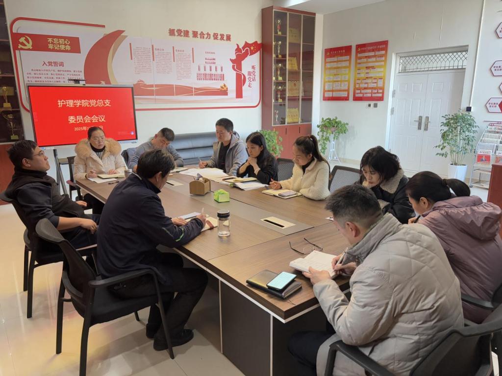 2025年12月15日,护理学院党总支在诚信4号楼B318会议室召开总支部委员会会议。会议以第一议题学习为引领,统筹推进党建“双创”申报与校园稳定工作,凝聚高质量发展合力。会议由护理学院党总支书记杨尚玉主持,全体党总支委员及各办公室负责人参加。
