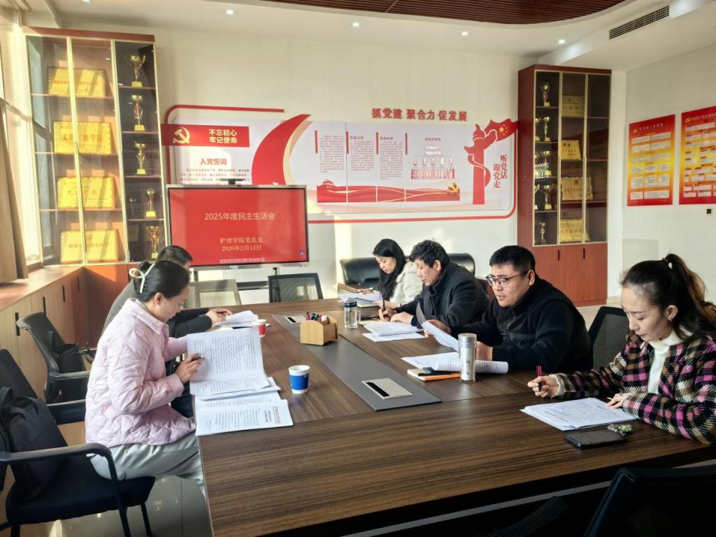 2026年2月13日,护理学院党总支2025年度民主生活会在诚信4号楼B318会议室顺利召开。会议由护理学院院长任建坤主持,全体党总支委员参会,学校督导组王海霞、王晓军同志到会指导。