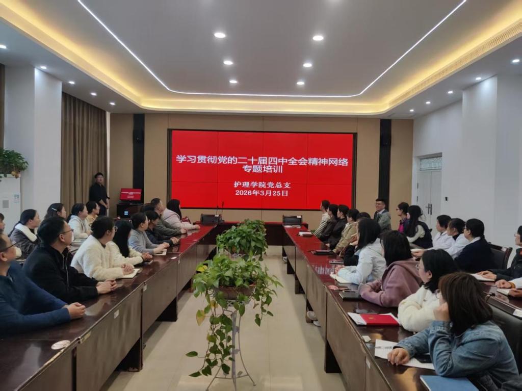 2026年3月25日下午,护理学院党总支在诚信4号楼B317组织开展学习贯彻党的二十届四中全会精神网络专题培训集中学习,护理学院全体党员、教师代表和实验员代表参加。