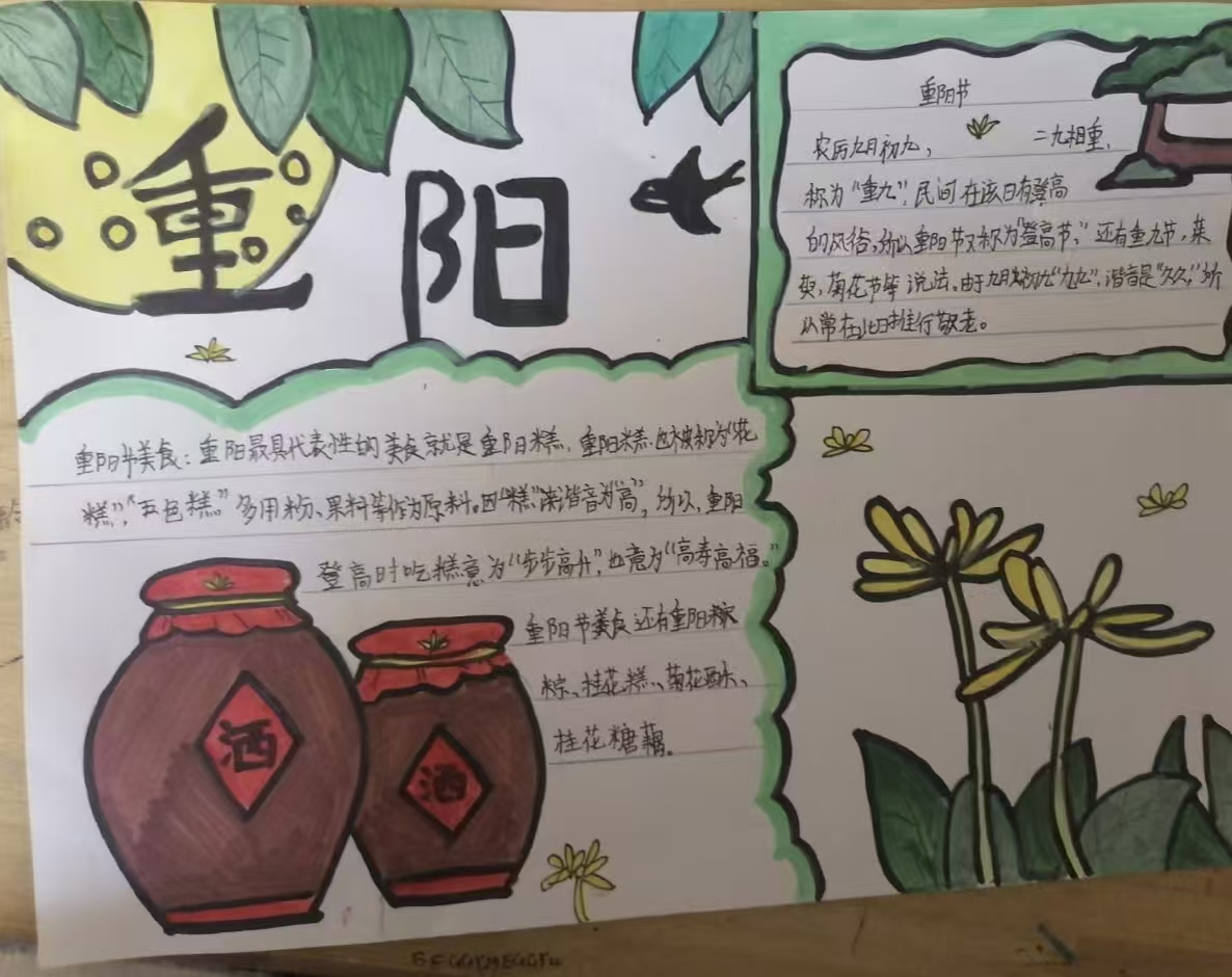 活动中,学生们围绕“敬老爱老”核心主题,积极查阅资料、结合生活见闻,将重阳习俗、敬老故事、孝亲名言等元素融入作品之中。绘制的手抄报版面设计新颖多样,色彩搭配和谐雅致。敬老海报以鲜明的视觉冲击传递温情,简洁有力的文字搭配生动形象的插画,直观展现了对长辈的敬爱与关怀。大家用细腻的笔触、真挚的情感,将对敬老美德的理解与践行倾注于每一幅作品,让传统文化在创作实践中得到传承与升华。这不仅充分展现了同学们的艺术素养与专业风采,更让大家在亲身参与中深刻领悟到敬老爱老的时代意义,既是对传统美德的崇高致敬,也是对文明新风的积极倡导。