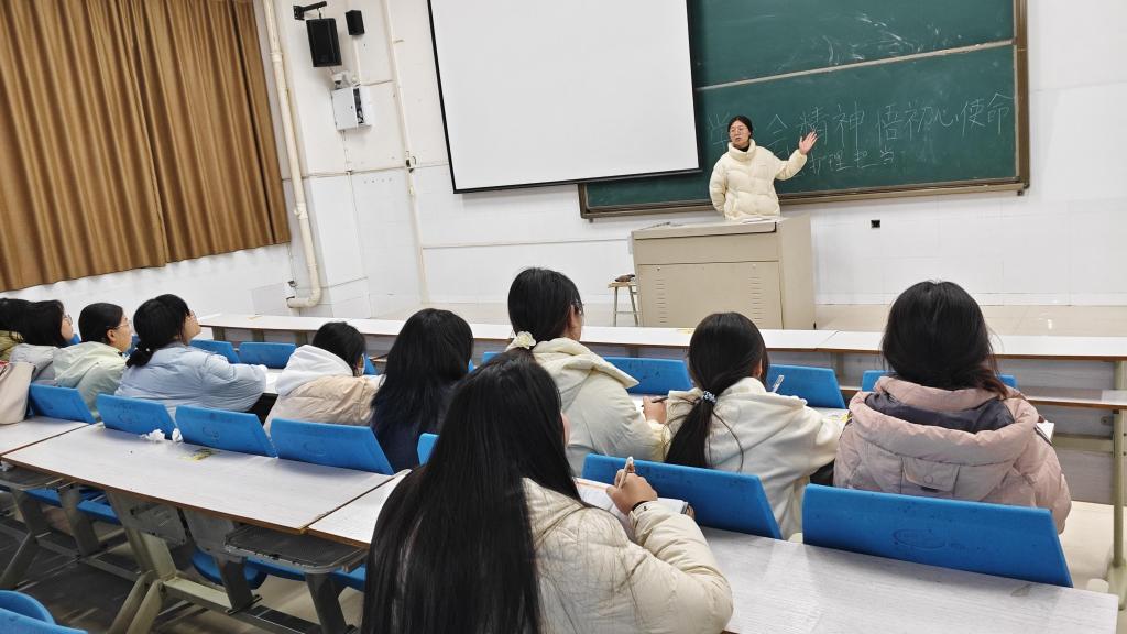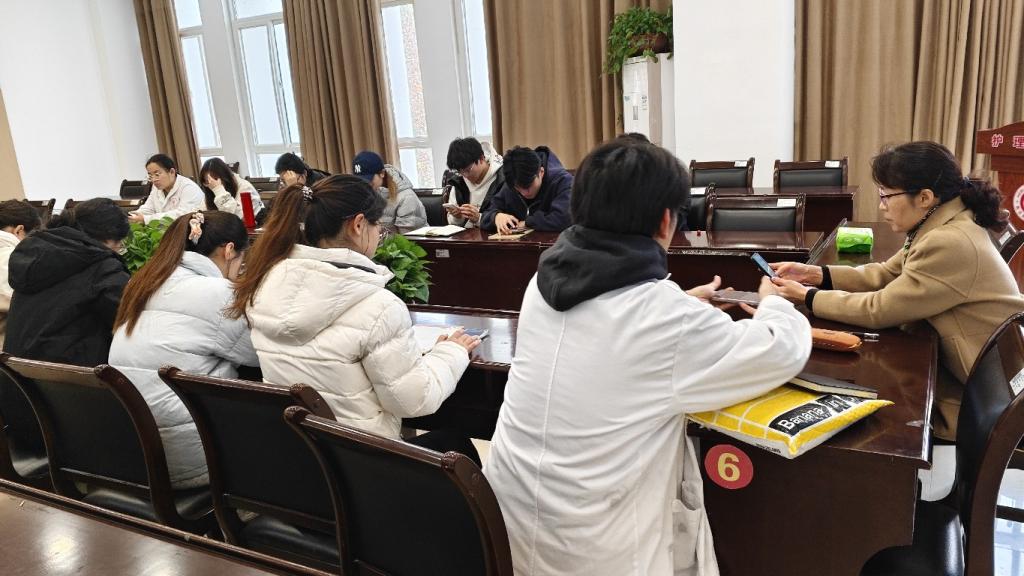 2025年11月12日,护理学院党总支学生第二党支部组织学生入党积极分子开展党的二十届四中全会精神理论学习活动,本次学习由党员教师魏瑞琴和尹艳茹老师领学。