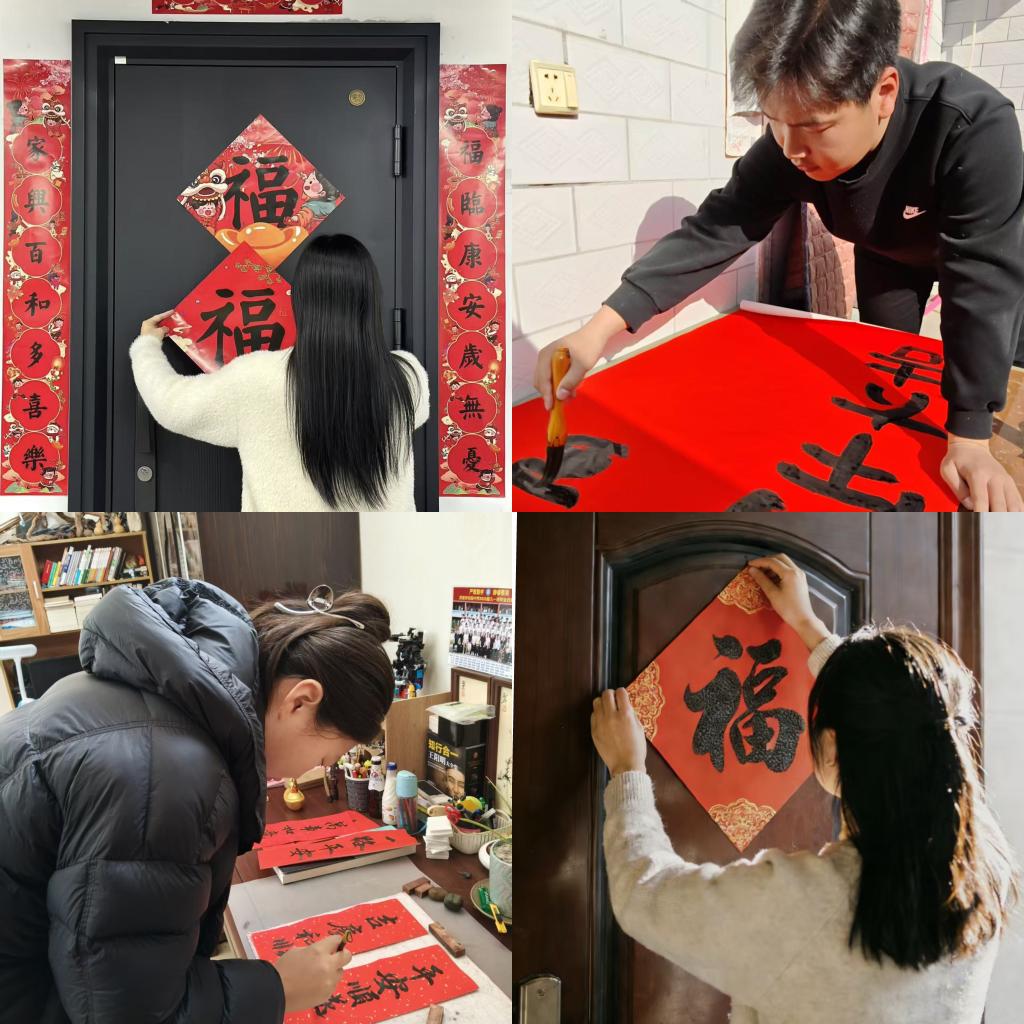 活动以“贴春联迎福,留年味全家福”为主题,鼓励大家在家中与家人共同参与贴春联、挂福字等传统年俗,并用镜头记录美好瞬间。同学们积极响应,精心挑选寓意吉祥的春联,细心书写对联和张贴福字,现场充满欢声笑语。一幅幅大红春联增添浓浓年味,一张张温馨合影定格团圆时刻,既展现了春节的传统习俗,也传递出阖家欢乐、幸福安康的美好祝愿。