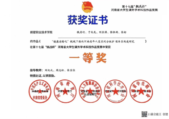 图6:鹤壁职业技术学院获得1+X母婴护理职业技能等级证书优秀试点院校