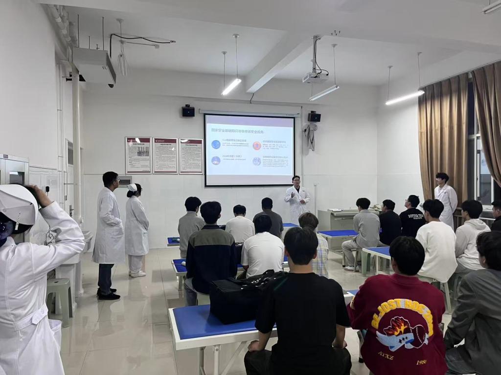 2026年4月15日晚,鹤壁职业技术学院护理学院利用急救技能培训时间,在B313教室举办全民国家安全教育日主题教育。本次活动贯彻落实鹤壁市人社局“国家安全进校园”“进培训课堂”工作要求,创新采用“专任教师+学工教师”双师协同模式,由护理学院专任教师刘纪与辅导员李飞老师联合主讲,智能制造学院与护理学院40余名学生共同参训。