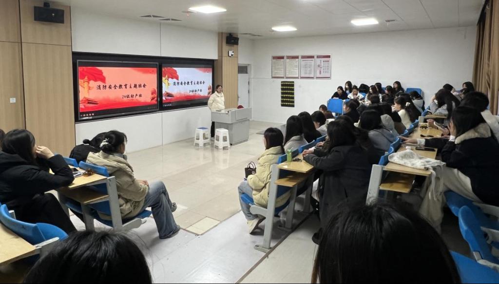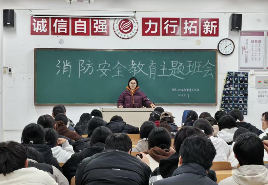 为深入学习贯彻党的二十届四中全会精神和习近平总书记关于应急管理的重要论述和消防工作重要指示批示精神,进一步做好学院消防安全宣传教育,强化学生消防安全意识,筑牢校园安全防线。2025年11月10日,护理学院辅导员组织全体学生在晚自习教室召开消防安全教育主题班会。