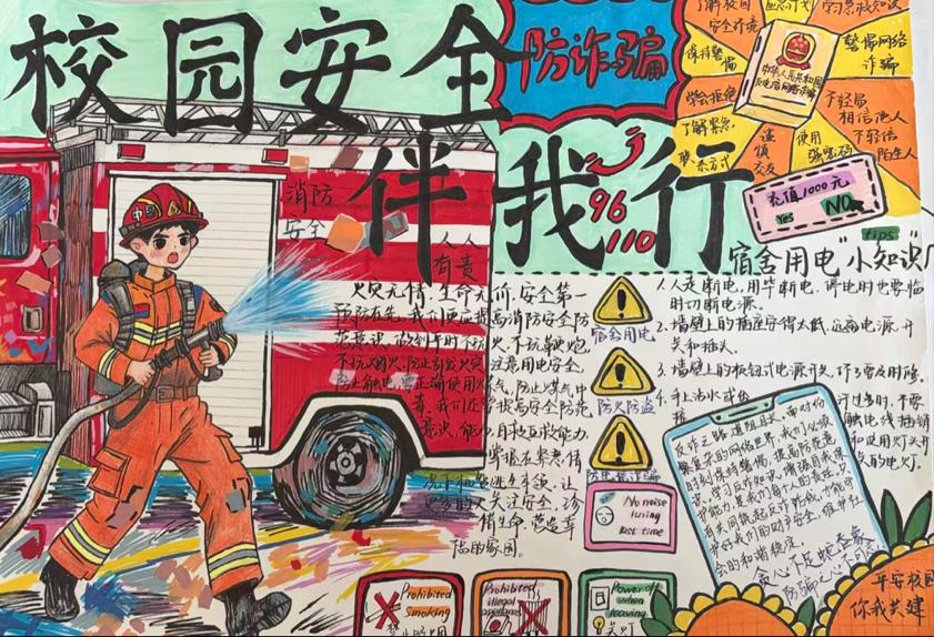同学们热情高涨、踊跃参与,将交通出行、消防安全、网络安全、防溺水、反校园欺凌等各类安全知识,融入书法创作、手抄报绘制、安全标语撰写等多元作品形式中。大家凝神挥毫、精心勾勒,以笔墨传情、以色彩绘意,在沉浸式创作中深化对安全知识的理解与认知,让安全准则入脑入心、见行见效。一幅幅构思精巧、内容详实的作品,不仅展现了同学们的巧思与创意,更饱含着青年学子对共建平安和谐校园的美好期盼与坚定决心。