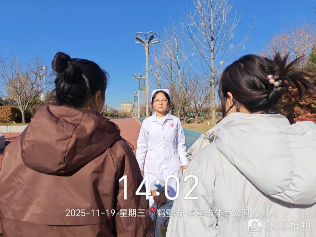 为了落实“健康”中国战略对青年健康素养培养的要求,将“预防为主”的核心理念转化为大学生能感知的、参与的实践活动。2025年11月19日,护理学院党总支学生第二党支部组织2025级递交入党申请书的同学在千鹤体育馆开展“冬季防流感,筑牢健康线”的志愿服务活动。