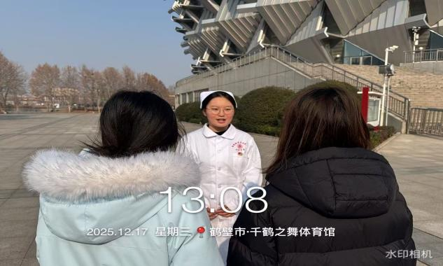 在活动中,学生们前往鹤壁市千鹤之舞体育馆,对周边居民区开展宣传实践。向居民普及高血压的基本知识、常见症状、危险因素以及日常生活中的控压方法。学生志愿者还重点介绍了合理饮食、适量运动、保持良好作息、定期监测血压等健康管理要点,引导居民树立科学的生活方式。宣传过程中,学生们主动克服沟通难题,用通俗易懂的语言将专业知识转化为居民易接受的健康指引,不少同学表示,在与居民的互动中深刻感受到护理专业的价值,也体会到“健康中国”战略背后的民生温度。